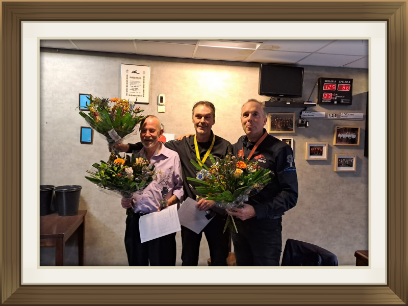 De voorronden Driebanden-klein 1e klasse 2022-2023 zijn gespeeld. Aan deze voorronden hebben Jan August Minke, Mans Tuin en Rob de Neef meegedaan.